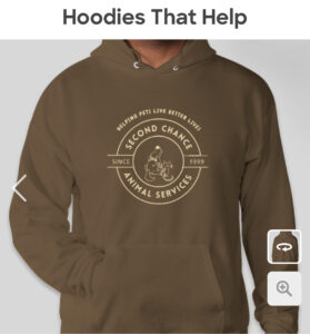 At Second Chance Animal Services, we believe every pet deserves a healthy, happy life. From providing life-saving medical care to offering affordable services that keep pets in their homes, we work tirelessly to support pets and the people who love them. What started as a small rescue has grown into a comprehensive organization that’s transforming the lives of thousands of animals each year. Your support through Hoodies that Help will change the lives of pets in need.
