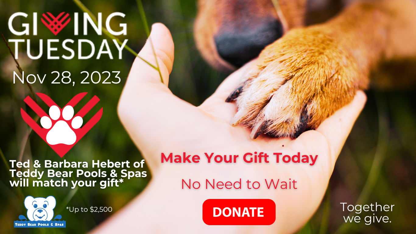 Pets need your help more than ever before. That’s why Ted & Barbara Hebert of Teddy Bear Pools have generously offered to double your Giving Tuesday gift up to $2,500.