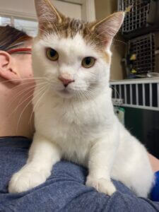 Due to the mass’s location, Toast needed her eye removed to ensure her comfort. We were worried but the biopsy results brought wonderful news: the mass was benign! Toast was cleared for adoption and quickly found her forever home. Through it all, Toast remained the sweetest cat, and thanks to supporters like you, she now has a happy, pain-free life.