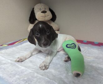 KJ: A 13-week-old Husky full of energy and love, KJ needs a left front leg amputation. Despite being a happy pup, KJ is in significant pain from an elbow fracture. Amputation is the best option to get him back to playing without pain.