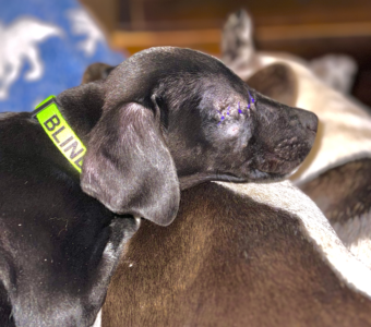 Ribbet now has a new collar identifying him as blind, which will help others understand his special needs and approach him with care. Thank you for being part of his journey and for your support. Your gift is providing for Ribbet’s ongoing care, and donations exceeding the cost of his treatment will help other pets in need of medical support.