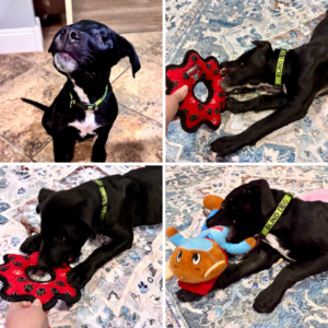 A sweet moment of Ribbet just being a puppy! Despite everything he’s been through, here he is playing with his foster siblings. Later this week, he has his surgery recheck and, paws crossed, he will get his stitches out!