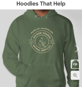 At Second Chance Animal Services, we believe every pet deserves a healthy, happy life. From providing life-saving medical care to offering affordable services that keep pets in their homes, we work tirelessly to support pets and the people who love them. What started as a small rescue has grown into a comprehensive organization that’s transforming the lives of thousands of animals each year. Your support through Hoodies that Help will change the lives of pets in need.
