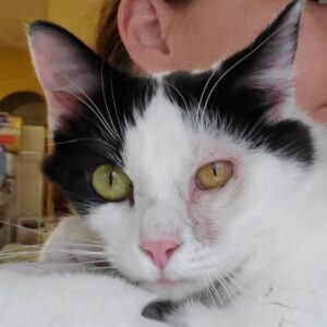 Bugs had his surgery first, and after he recovered, he found his forever home. Leif’s entropion was much worse and he underwent surgery on both eyes. He made a full recovery and traveled to our Framingham PetSmart satellite where he found a loving new home.