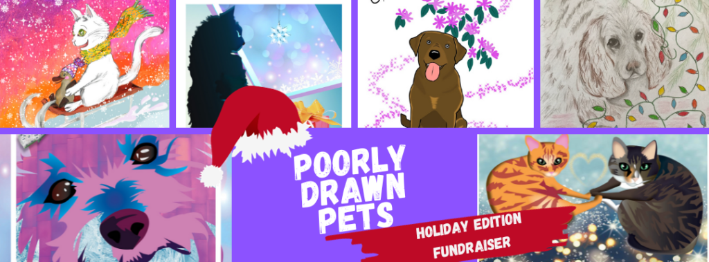 This fundraiser was so much fun, our volunteers are bringing it back for a limited number of “Portraits.” For a $25 Facebook donation, one of our Second Chance volunteers will create a portrait from a pet photo you provide. Just remember, our volunteers are known for taking care of pets in need, so you never know what you’ve going to get!