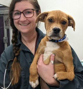 11-week-old Baby Yoda arrived at Second Chance on transport last month from a crowded Missouri shelter with a congenital defect. He was born without a radius in one leg. As you can see in the photo below, his leg was abnormally shaped and shortened. He could not bend it or place weight on it and when he tried to use the leg, it caused him to contort his body which put him at risk of arthritis and injury to his body.