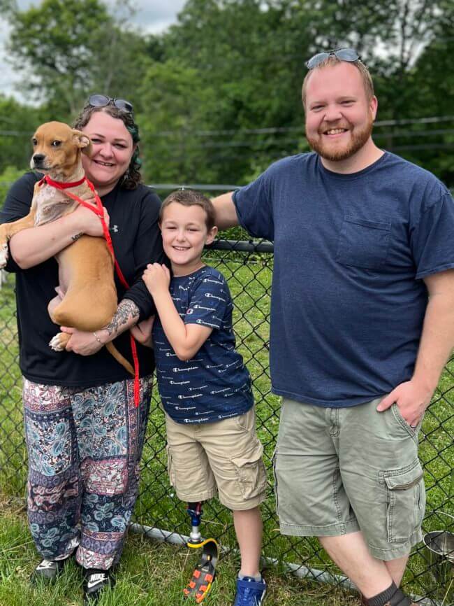 A shelter dog who had amputation surgery for a birth defect has found a forever home with an eight-year-old boy who can relate.